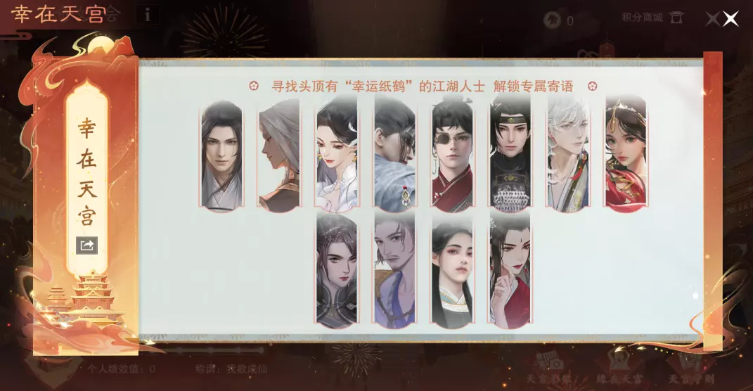 为了唤醒他,让奇妙会顺利推进,小四打探到,少侠今年要“上天”?!没错,今年的奇妙会主会场就设在天宫,梦幻仙境风采陪你过大年。但是也别急,这天宫奇妙会,可是只有仙人才能参加,而那传说中的天宫,也不是好闯的!