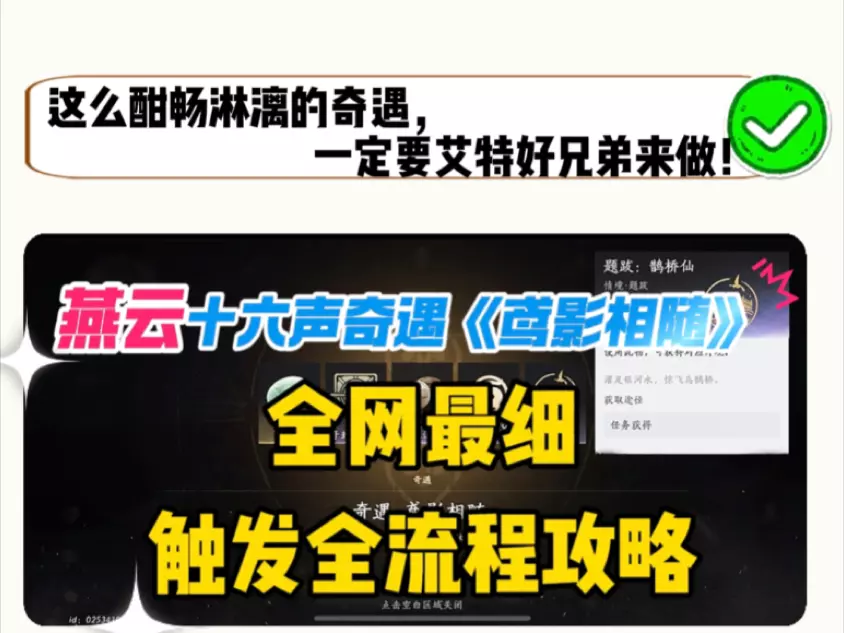 1. 丰厚经验:成功完成不见山引雷人奇遇后,你将获得大量的角色经验,有助于提升角色等级,解锁更多技能和属性。 2. 珍稀道具:有可能获得一些燕云地区特有的珍稀道具,这些道具或许能在后续的冒险中发挥重要作用,比如独特的武器图纸、强力的防具材料等。 3. 剧情解锁:此奇遇还可能会解锁一段隐藏剧情,让你更深入地了解燕云地区的神秘故事和背后的世界观,丰富游戏体验。 注意事项 1. 时间限制:整个奇遇过程可能会受到时间限制,比如天色渐晚或者特定时间段的影响。所以在触发后要尽快行动,合理安排时间,避免因时间因素导致奇遇失败。 2. 存档备份:在进行奇遇之前,建议先对游戏存档进行备份。以防万一在奇遇过程中出现意外情况,如游戏崩溃等,你可以随时恢复存档,重新开始尝试。 通过以上攻略,相信你在燕云十六声中能顺利完成不见山引雷人奇遇,收获满满的惊喜与成长。