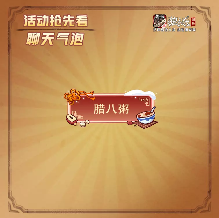 2、腊八粥聊天气泡宝箱限时上架,开箱有机会获得腊八粥聊天气泡。