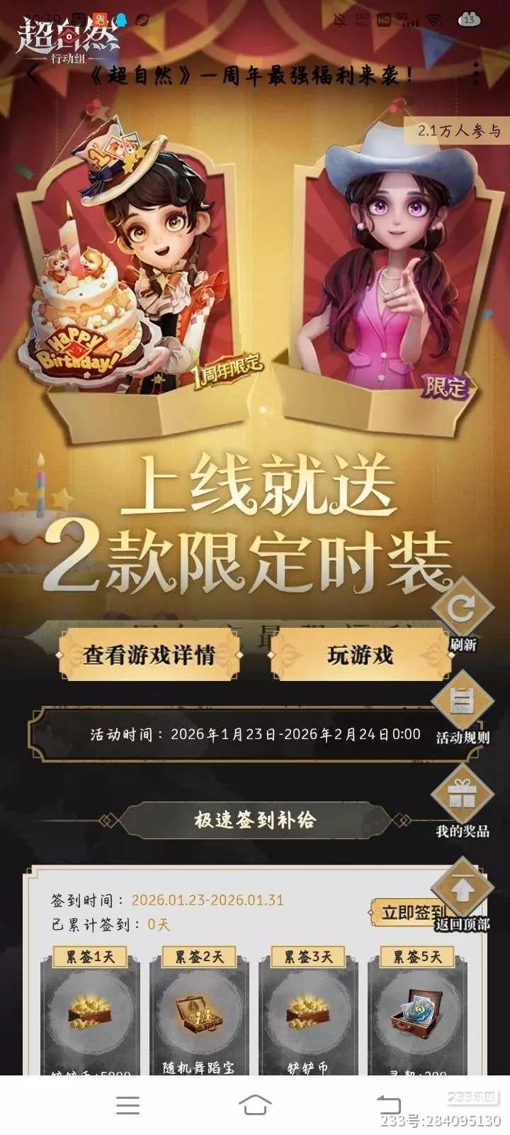 不用做任务,不用攒积分,只要在活动期间登录就送!一款是周年限定的复古派对风阿念,另一款则是粉色牛仔限定款的爱丽丝💕