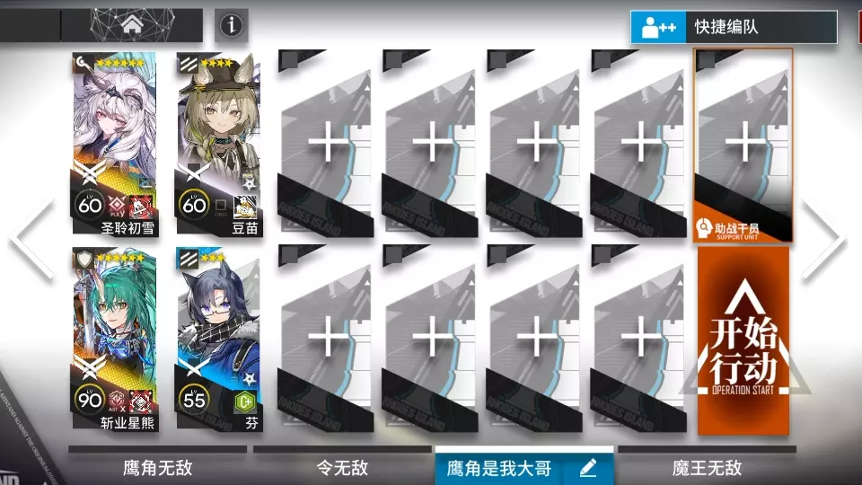 BGM:Brand New Day - 安田レイ 技能除了德克萨斯是7级外都是专三,煌可以换任意长手输出,星熊临光可以换成任意高练重装,塞雷娅可以换成任意高练奶…