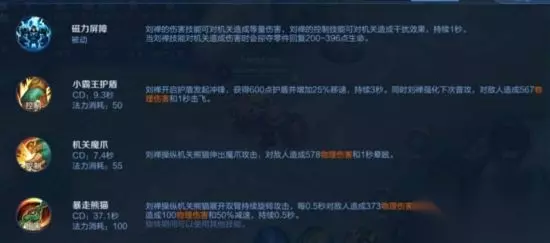 从上图可以看出刘禅自从干扰的改动之后,巅峰赛和顶端排位的登场率就没有下来过,都位居排行榜的top1和top2。大家也可以学习一手刘禅,在对局中出现没有辅助的情况下自己可以补位,提高自己巅峰赛或者排位的胜率。因为刘禅的强度本身就不低,操作难度也没有鲁班大师等辅助英雄难,而且是控制与坦度都兼备的一个辅助,既能开团,又能带线,真的是非常不错的选择。 一、技能分析