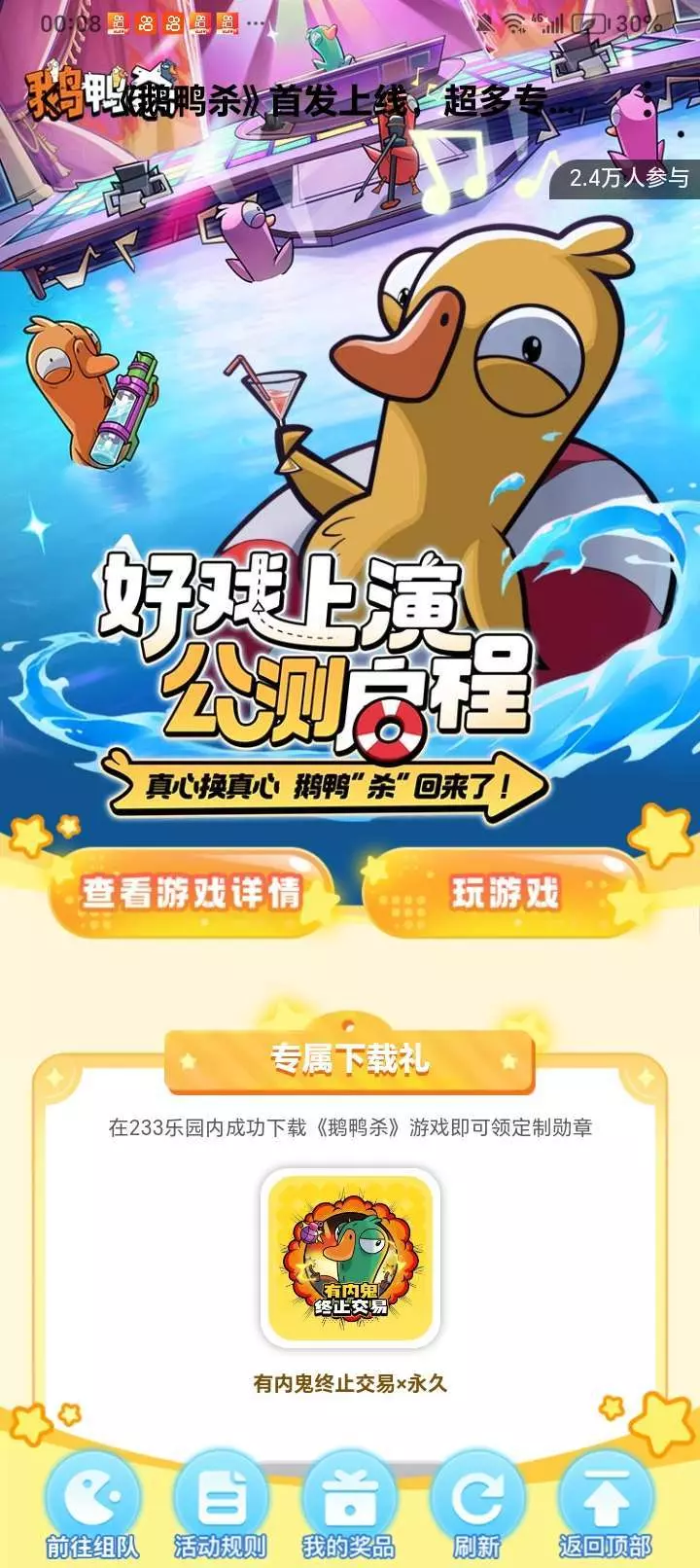 这款《鹅鸭杀》有福利了,只要下载了就可以领徽章了