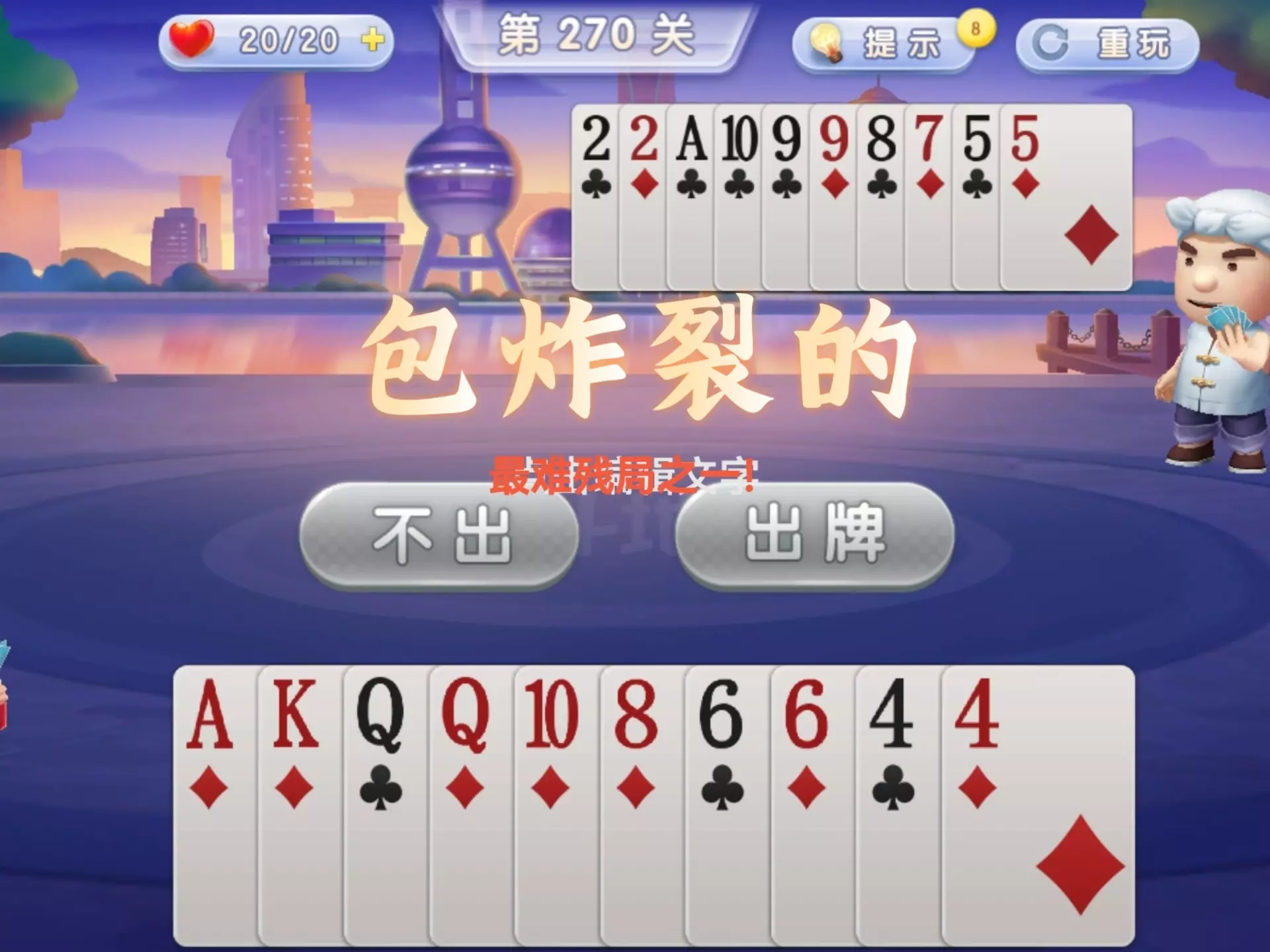 三岁玩牌破釜沉舟四个3的大胆一炸后期残局细腻的行牌为自己争取到了胜利!