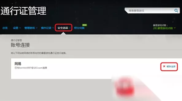 三、完成连接之后即可关闭窗口,返回暴雪游戏平台。 网易通行证登录常见问题: Q:为什么我点击了使用网易通行证登录,但是页面跳转之后没有反应? A:若您在连接过程中出现页面无法跳转或者是页面跳转之后无反应,请清理您的浏览器缓存,然后再行尝试。 Q:网易通行证和暴雪游戏通行证是不一样的密码,那以后两个密码都可以登录了? A:连接之后,选择网易通行证登录的必须输入网易邮箱登录密码,选择暴雪游戏通行证登录的须使用通行证密码。 Q:我可以把其他的网易邮箱和暴雪游戏通行证连接一起吗? A:连接的网易通行证和暴雪游戏通行证必须一致,即为同一个网易邮箱。 Q:为什么我用网易邮箱登录之后提示我使用另外的邮箱登录暴雪游戏通行证? A:网易邮箱有主邮箱和子邮箱之分,若您使用了子邮箱(手机号码)登录则会提示您主邮箱已注册为暴雪游戏通行证,请输入准确的主邮箱名和密码登录。 Q:我的网易通行证和暴雪游戏通行证都有安全保护的,这个冲突吗? A:不冲突,您在使用网易通行证登录时使用网易邮箱的安全验证即可。 Q:我不喜欢用网易通行证登录,连接了的可以取消吗? A:可以的,您登录暴雪游戏通行证之后,在安全选项—账号连接内,点击解除连接即可。