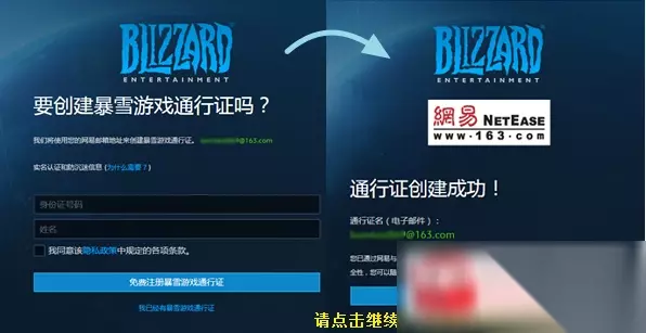 2.若该邮箱还未注册暴雪游戏通行证,则会提示使用该邮箱创建暴雪游戏通行证。创建成功之后,请完善您的暴雪游戏通行证。