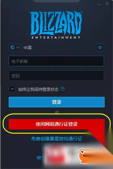 暴雪游戏登陆器连接方式: 一、打开登陆器,选择“使用网易通行证登录”。