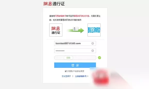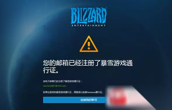 三、登录暴雪游戏通行证。 1.若该邮箱已经注册了暴雪游戏通行证,则会提示直接登录以连接网易通行证。