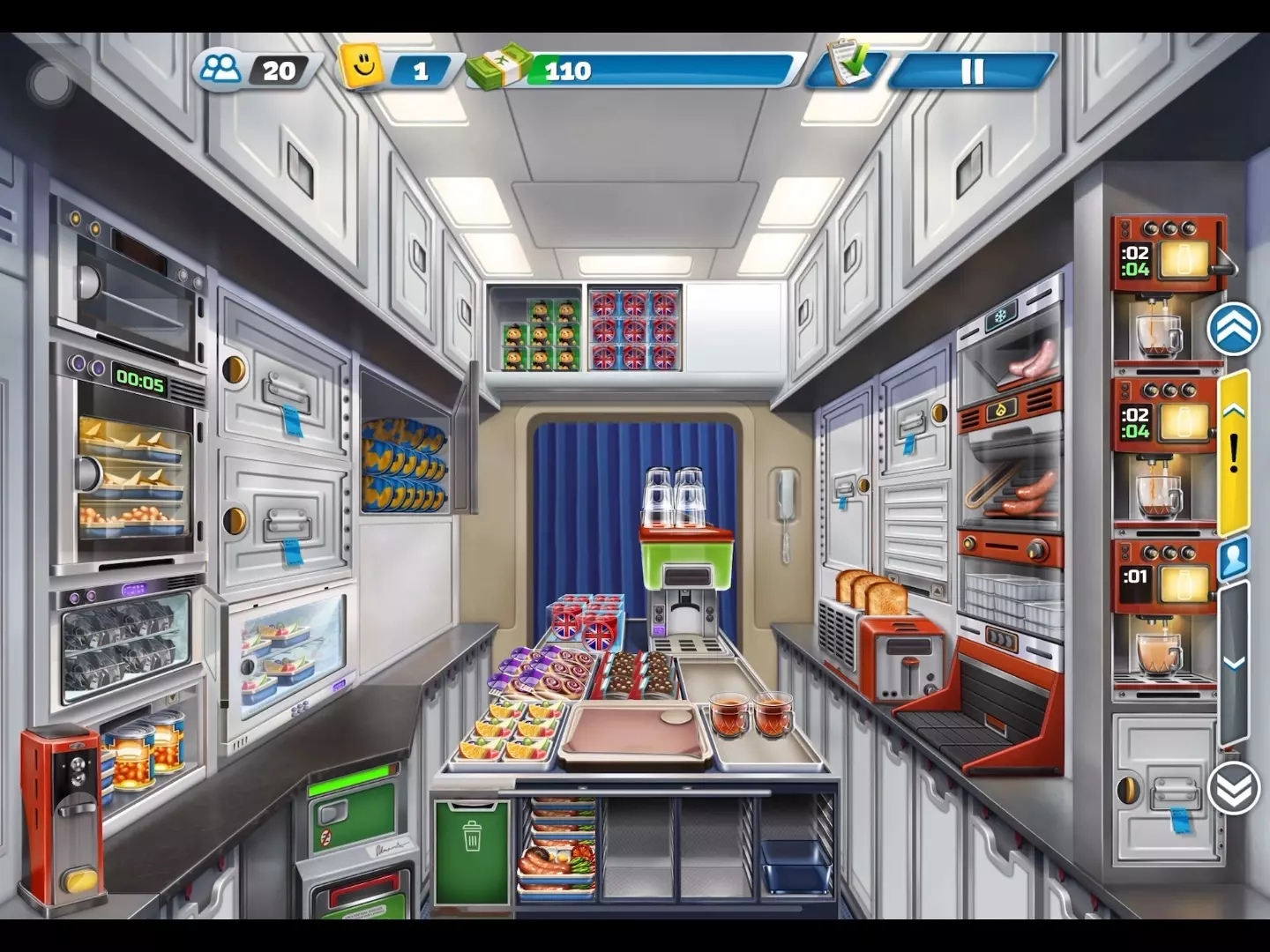 这是手游《飞机大厨》的纽约大厨比赛内容分享,展示了满氪玩家在纽约新机场的游戏过程,包括为乘客准备餐食、完成每日任务等轻松通关的游戏画面。