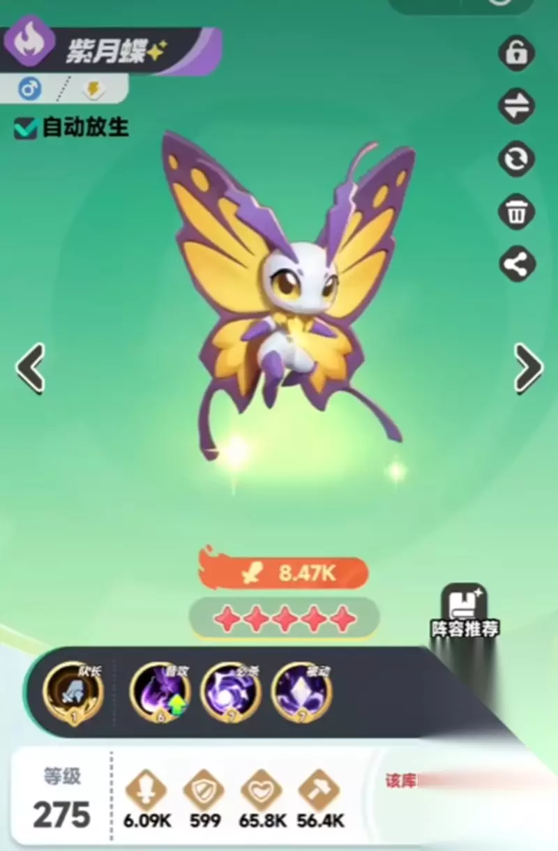 紫色的月亮蝴蝶 紫色月亮蝴蝶是黎明第二代电气系统库的最高输出。她的技能主要是电损伤,有些技能具有链路闪电效应,可以在多个敌人之间跳跃并造成多重伤害。 Ziyuedie的队长的技能可以增加同一营地中库比的伤害,最终技能会对所有敌人造成巨大的伤害,并有机会增加电力诱导状态。