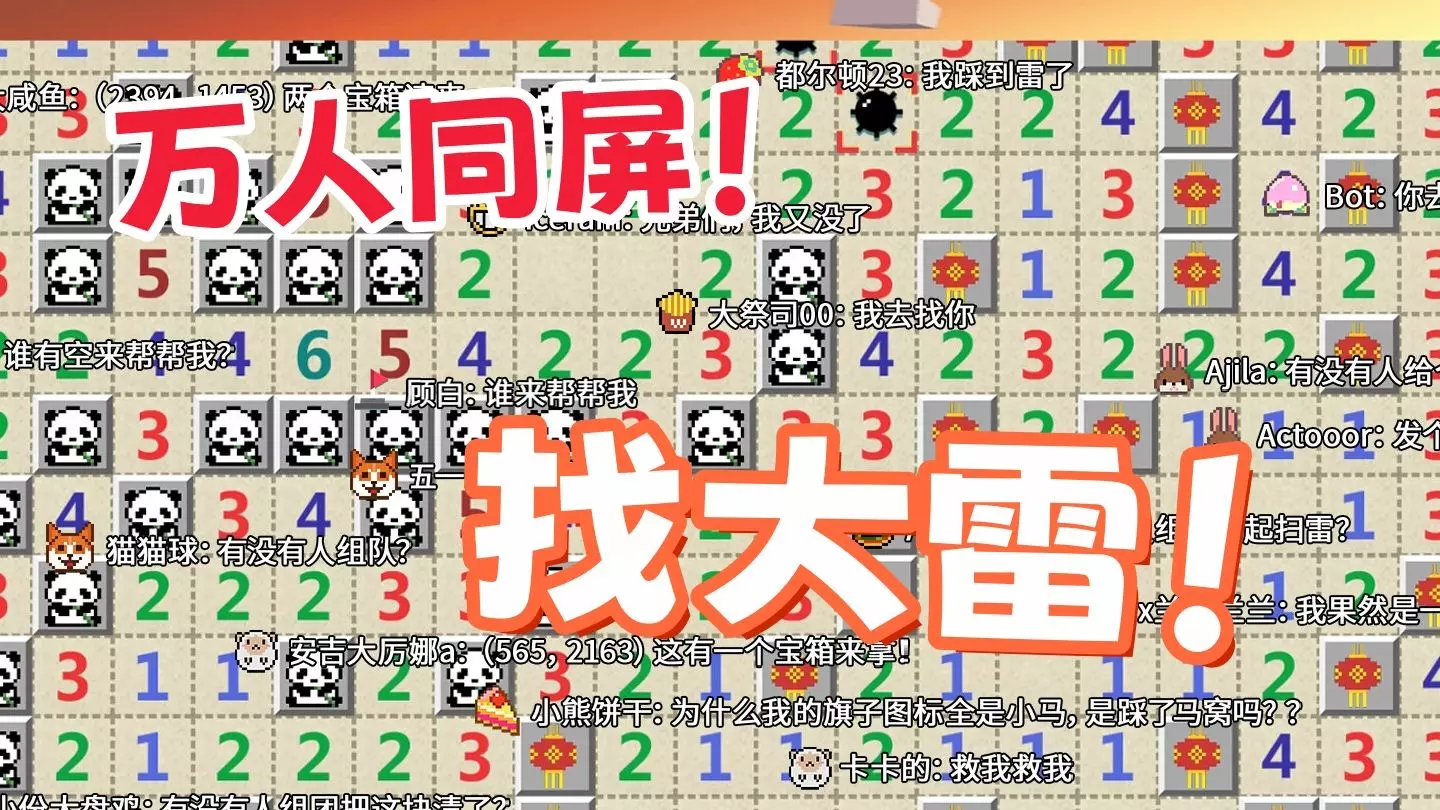 这是一款名为《一起来扫雷》的独立游戏,支持全世界玩家共同游玩,在经典扫雷玩法基础上,加入了趣味元素与世界弹幕互动功能,玩家扫雷失误后可选择复活,还能和全球玩家交流扫雷相关内容。