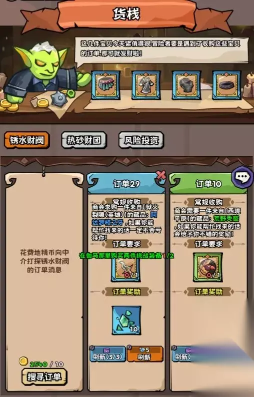 金币搜寻订单,完成订单获得魔力碎片用来升级我们的藏品,如果你没有合适的订单,可以看看广告刷新一下。
