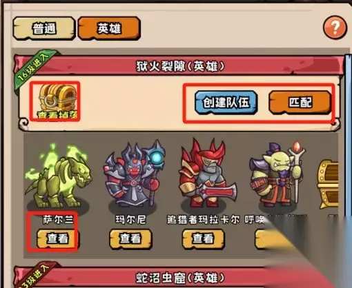 就是常说的副本入口,分为普通跟英雄,英雄难度可以和其他玩家组队攻略,在界面也可用【查看】,获取Boss的掉落信息。