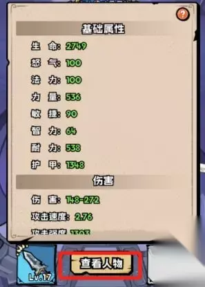 里面可以查看自己角色的具体数值。