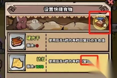 3.1.1、食物:剩余多少食物补给在游戏主界面的右下角可以查看,点击可以到商店内进行购买。需要注意的是食物是每6秒回复一定的血量,具体可以点击食物查看。记得预留充足的食物进行挂机哦!