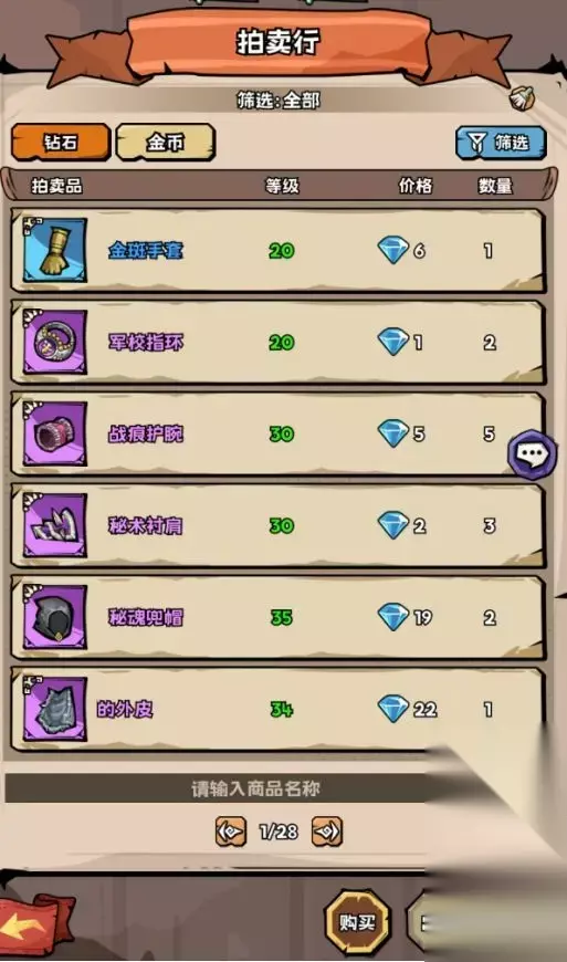 3.6.11、拍卖行:用砖石购买别的玩家稀有的武器饰品。点击饰品可以查看武器属性。也可以赚到你的第一桶金!