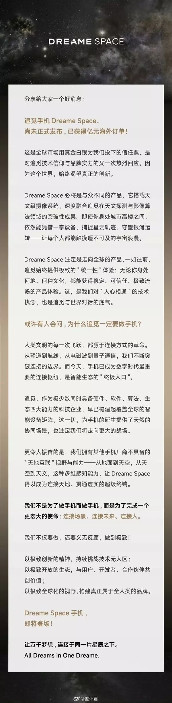 据介绍,追觅手机未来不仅局限于国内市场,还会进军全球市场。追觅手机项目最早是在去年9月官宣,当时预热的信息是“追觅发布Space天文级摄影手机”。