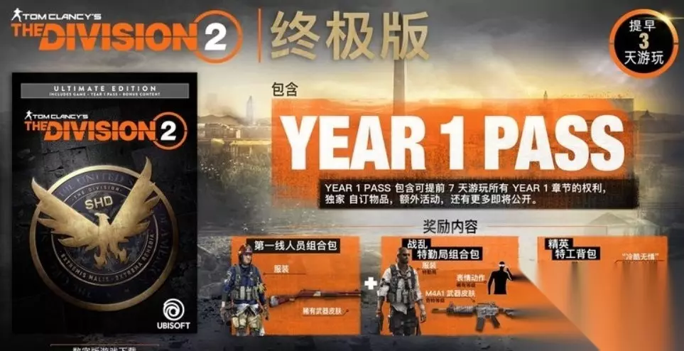 然后是终极版,售价一般是比标准版高一点。版本包含了游戏的原版以及第一年的季票。除此之外,还有一些额外的“组合包”奖励,主要是给一些服装外观、武器皮肤、一些表情动作之类的。还有一个特攻组合包,包含额外的存储空间、技能特效等等。更多是的一些方便游戏体验的内容,对游戏平衡影响不大。