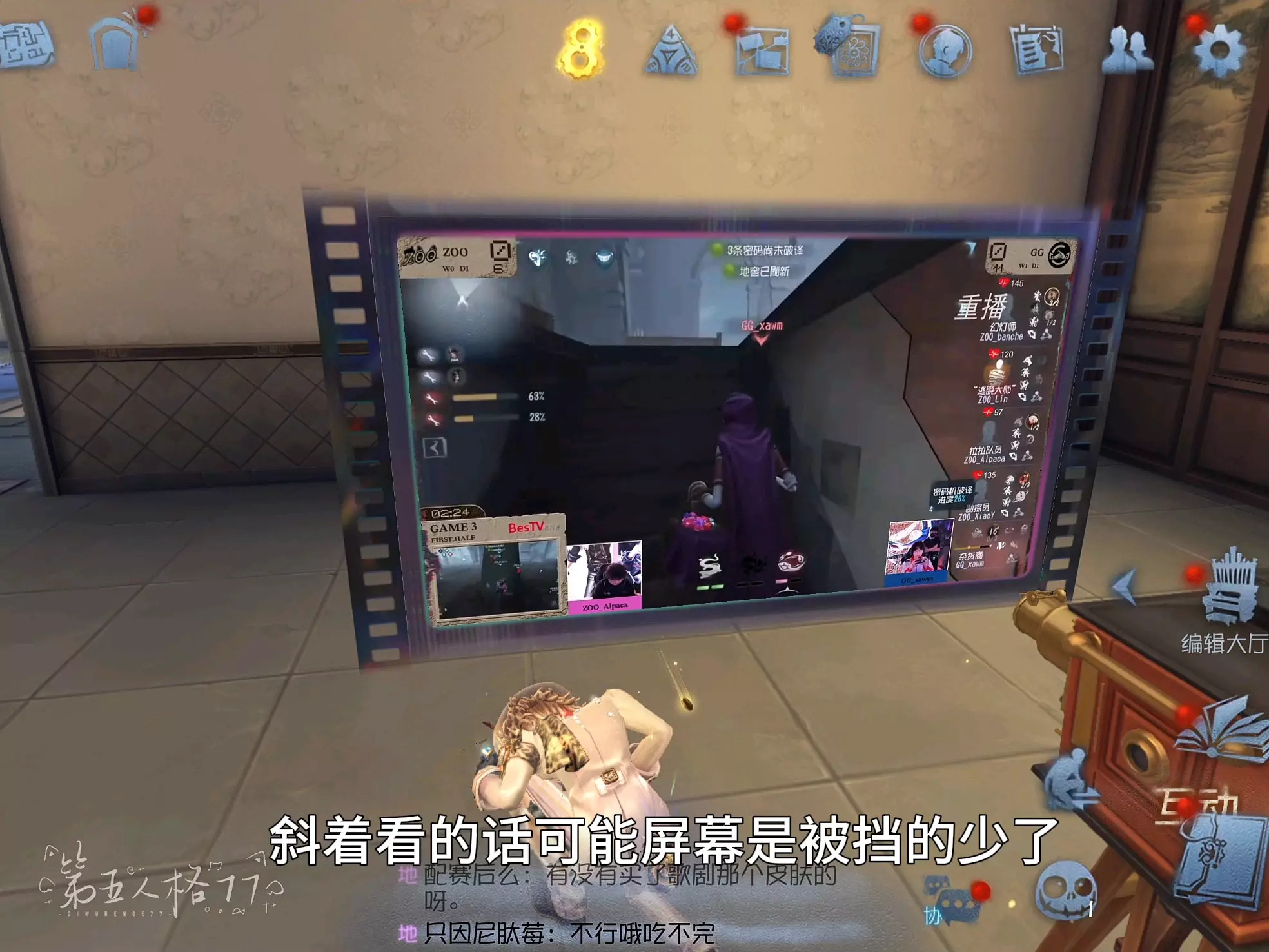 第五人格推出可在归宿使用的赛事投影仪家具,花费19800金苹果即可兑换,交互该家具后,就能在归宿大厅内投影赛事直播,还能查看赛事活动、战队介绍等相关内容。