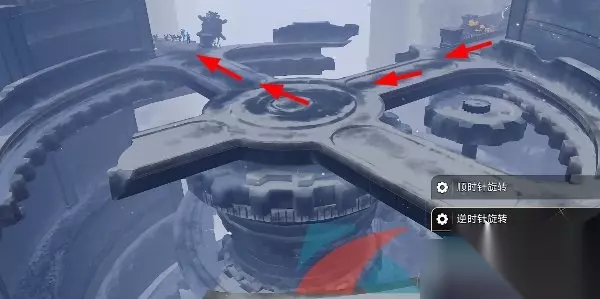 6、需要再次启动第一个机关旁边的控制装置,选择逆时针旋转,沿原路返回,去到第三处机关位置;