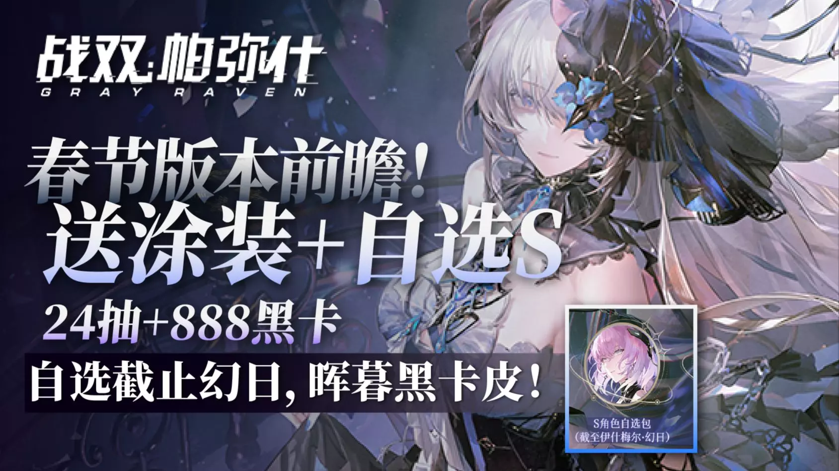 直播兑换码:【NEWROSETTA0203】【PGR2026】 自选S截至到幻日,包括前面的所有角色。 黑卡皮是比安卡晖暮。 送24抽+888黑卡+斜奏皮肤,有…
