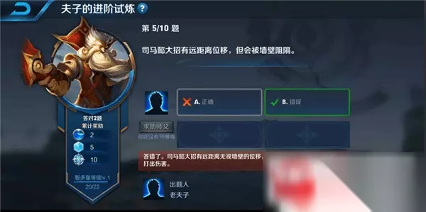 司马懿大招有远距离位移,但会被墙壁阻隔? 答案:B.正确。