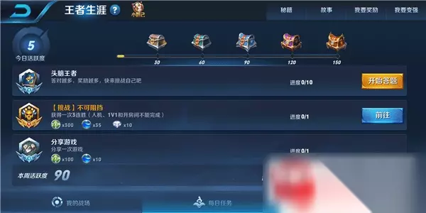 头脑王者答题入口:王者生涯--每日任务中