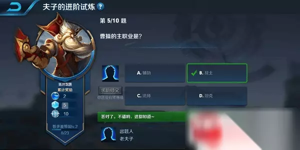 曹操的主职业是? 答案:B.战士。