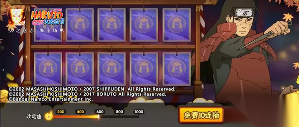 柱间送十连 新角色上线会赠送免费十连抽,抽完还有1次逆天改运的机会。