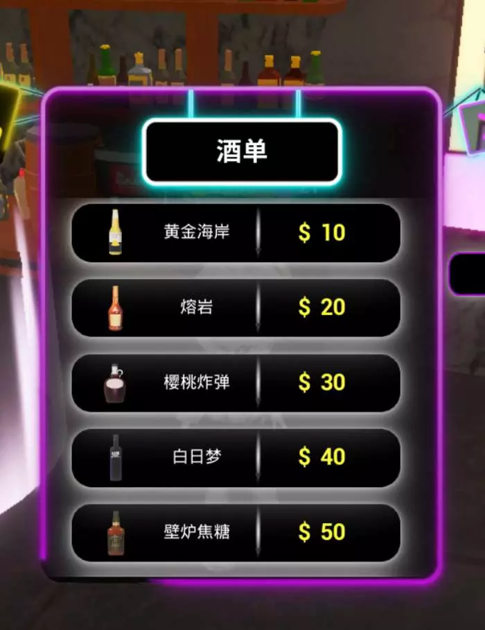 你们好我是莫厌,游玩酒吧过程中中,一定少不了的就是酒了,在评论区说说,下列几款酒水,你最想在酒保汤米那里购买哪款酒呢?