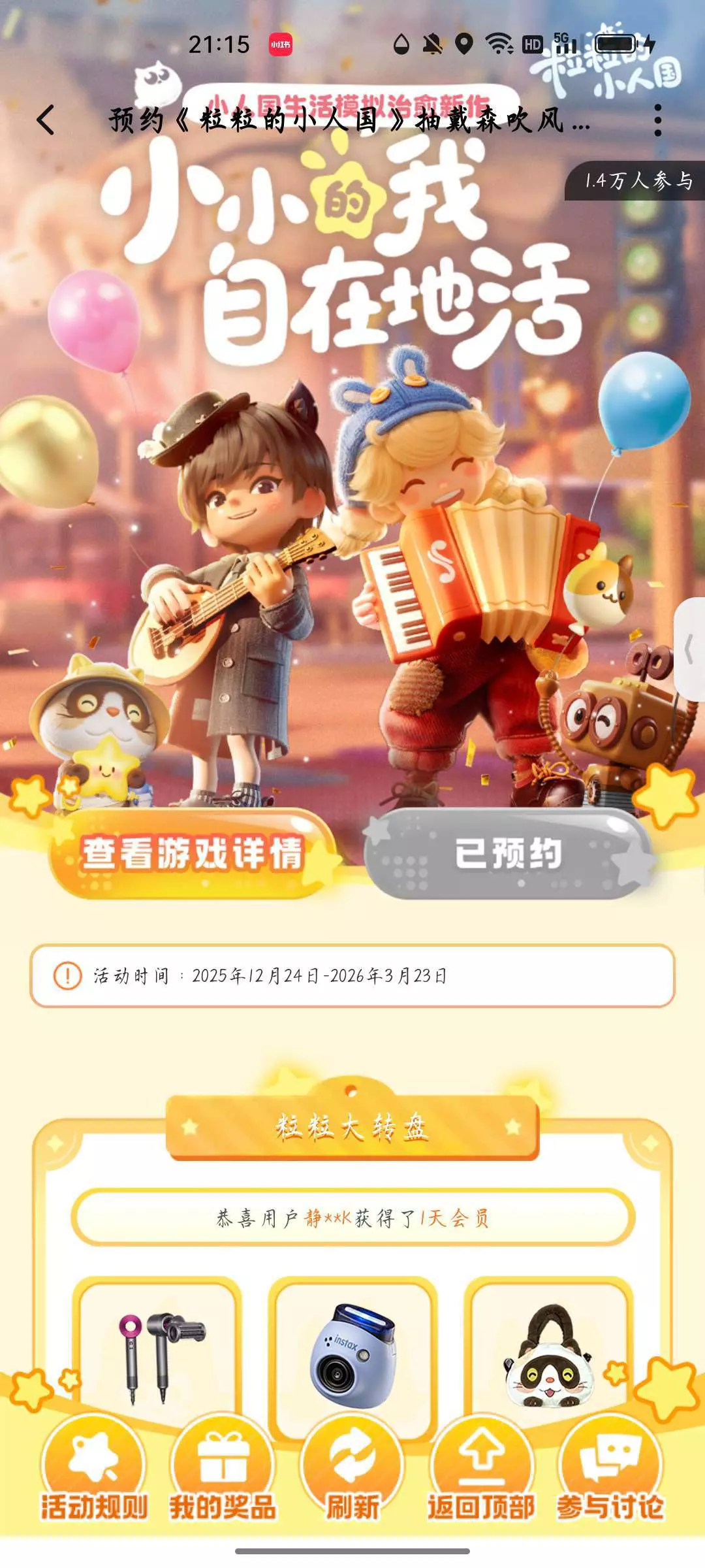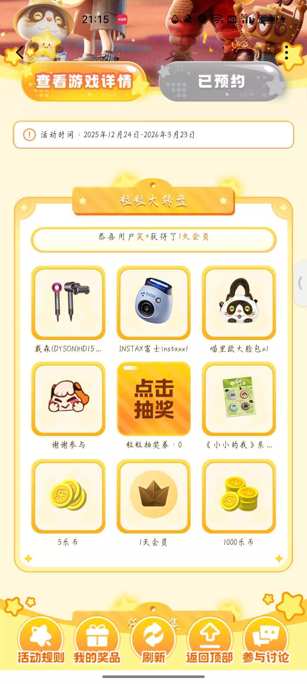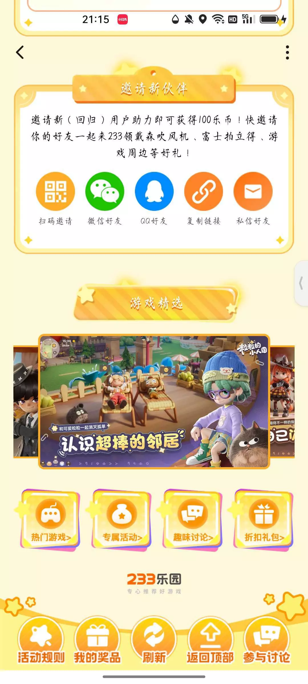 #福利推荐 点击福利中心→打开预约合集→搜索《粒粒的小人国》→向上滑有一个大转盘,有各种各样的福利!eg:乐币、会员等等福利等你来拿→再往下滑有邀请新/回归用户可得100乐币!快来《粒粒的小人国》叭!我在这等你!!!