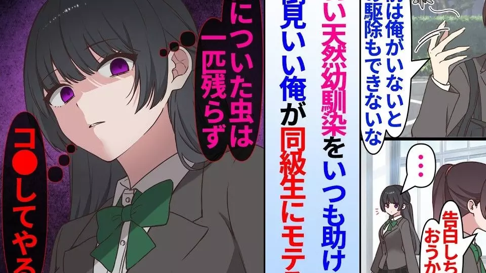 【漫画】か弱い天然幼馴染をいつも助ける面倒見の良い俺。同級生女子にモテ始めると…幼馴染「俺君につく悪い虫は駆除してあげる」嫉妬し始めた。天然だと思っていた幼馴染…