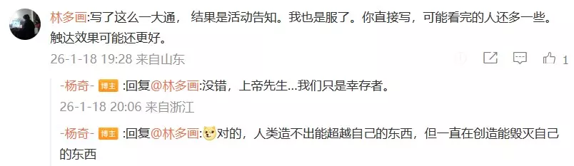 看完"餐饮圣经"有感:疑似【伪人】太多了?昨日,游戏科学联合创始人,《黑神话:悟空》美术总监【杨奇】发文谈如今的AIGC(内容挺长,最后两句"带货"...)。(省流:记得多出门走走1月23日至1月25日,黑神话2026新春节场【黑马会】将在杭州线下举办)【黑马会】活动时间:10:30 - 20:30(1月23日至1月25日)活动地址:浙江省杭州市西湖区转塘街道艺创小镇凤凰创意国际C3幢