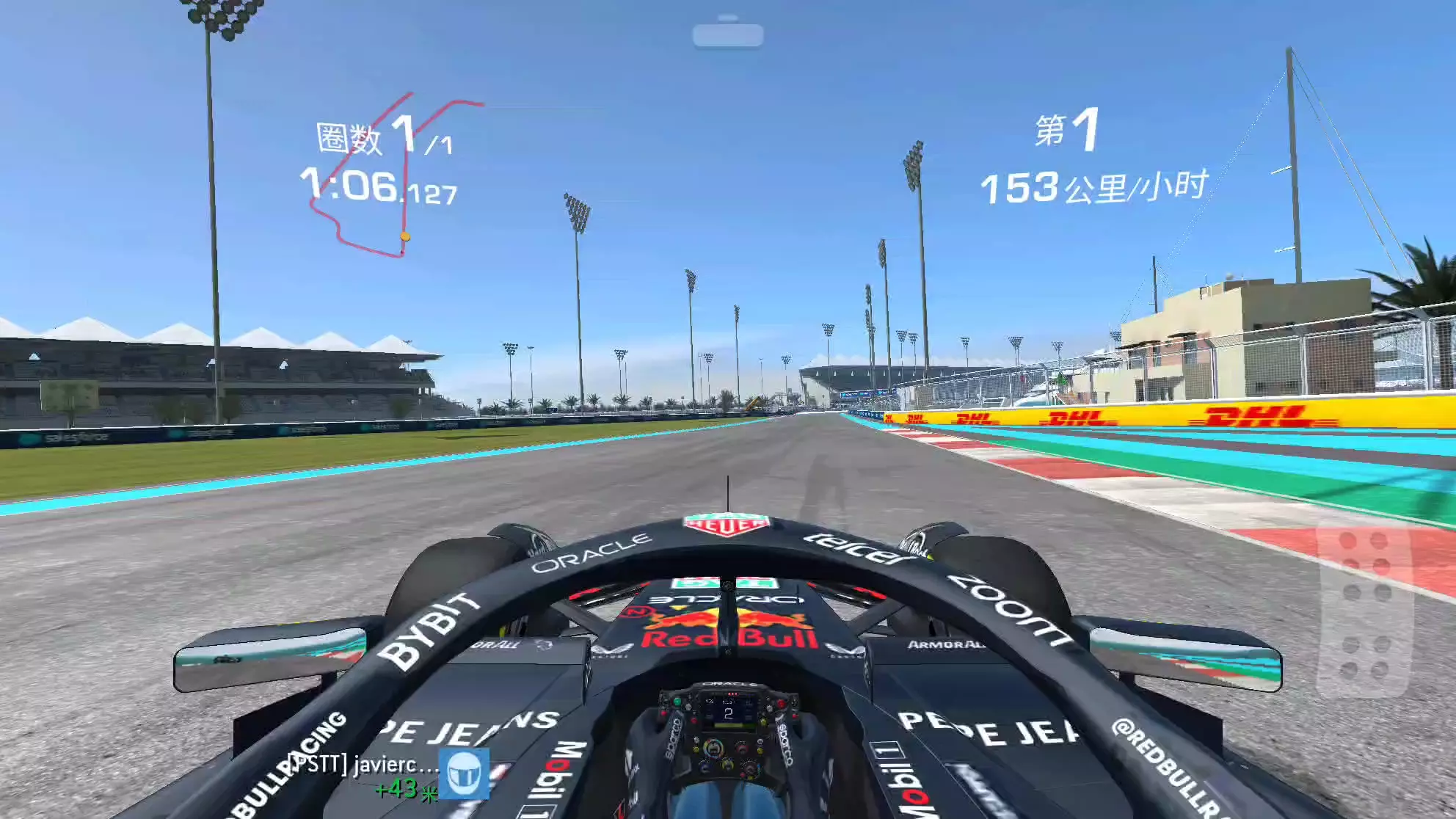 这一圈下来,我也是直到看回放的时候才发现,我有两个漂移都踩到了赛道内线,有一次甚至都上了路肩。但是在比赛赛程中,因为这个车的引擎声音比较大,车身还长,我也就真没…