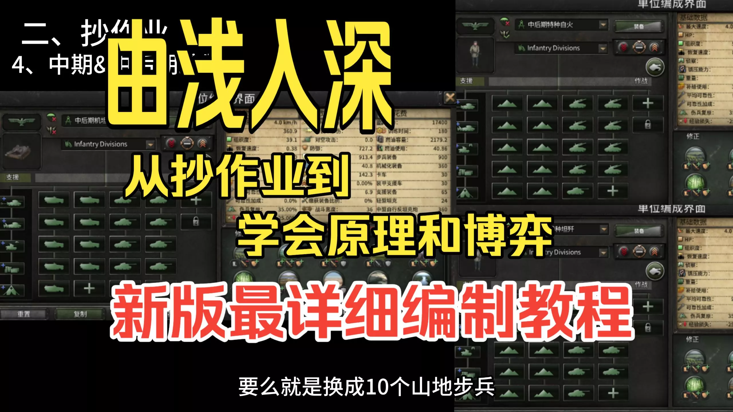由于适用性问题,视频中并未提到近期新兴的46宽超大编制师,其原理在于通过拉高山地步兵比例降低装甲率,同时特种部队能够最大程度稀释更高的超宽惩罚,这一编制更多的被…