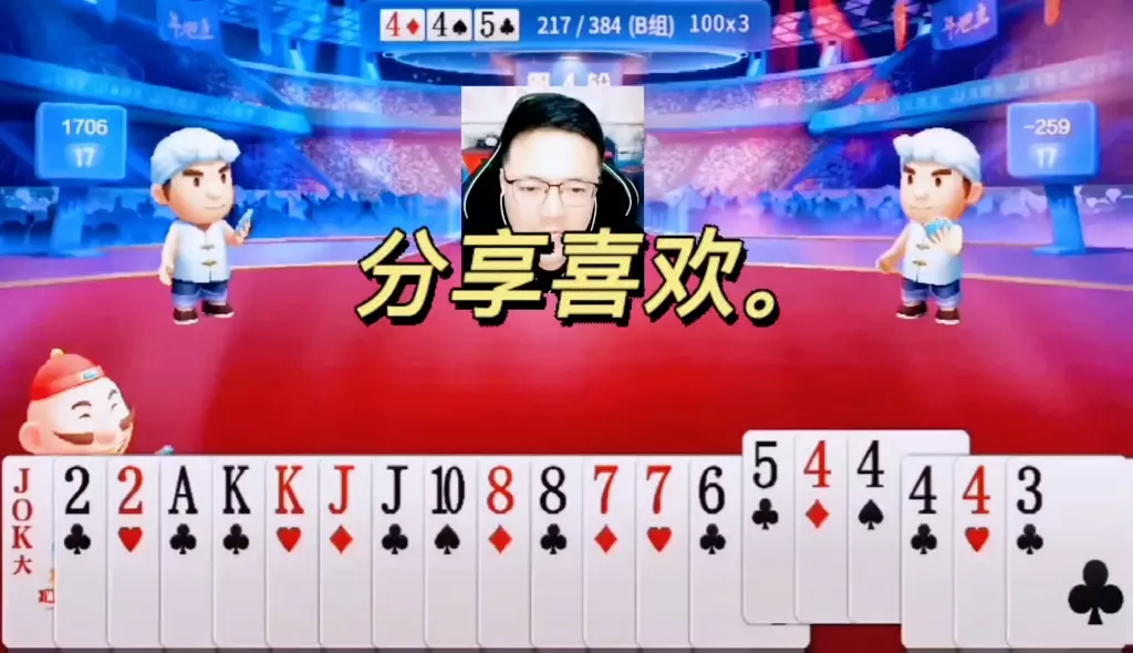 三岁玩牌破釜沉舟四个3的大胆一炸后期残局细腻的行牌为自己争取到了胜利!