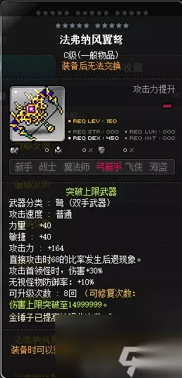玩家只要捕获后,这3个效果,都会同时拥有。 内在能力推荐:BOSS伤害、第二排和第三排分别可以考虑攻击力和增益持续时间(因为BUFF比较多,增益持续时间增加对输出也有所增加)。 怪怪卡可以考虑使用:14%攻击力+50%增益持续时间,有条件的玩家也可以考虑双攻(2*14%攻击)甚至三攻(3*14%攻击)。 1、武器分类选择,使用的武器分类为:弩,副手(箭轴):