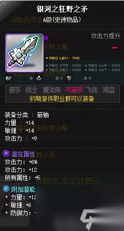 高配主武器可以考虑特米弩,但是在我们区很少见到,副手可以考虑银河狂野之牙: