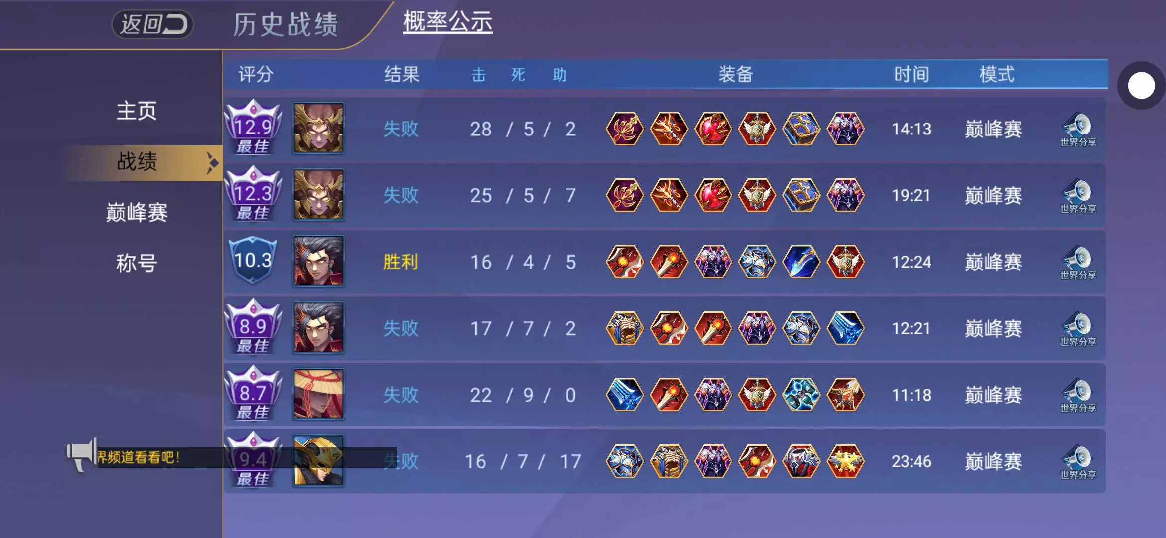 巅峰其实跟一打五没啥区别,队友不是科技就是摆烂,要么就。菜的一坨,什么公平竞技,全都是废话