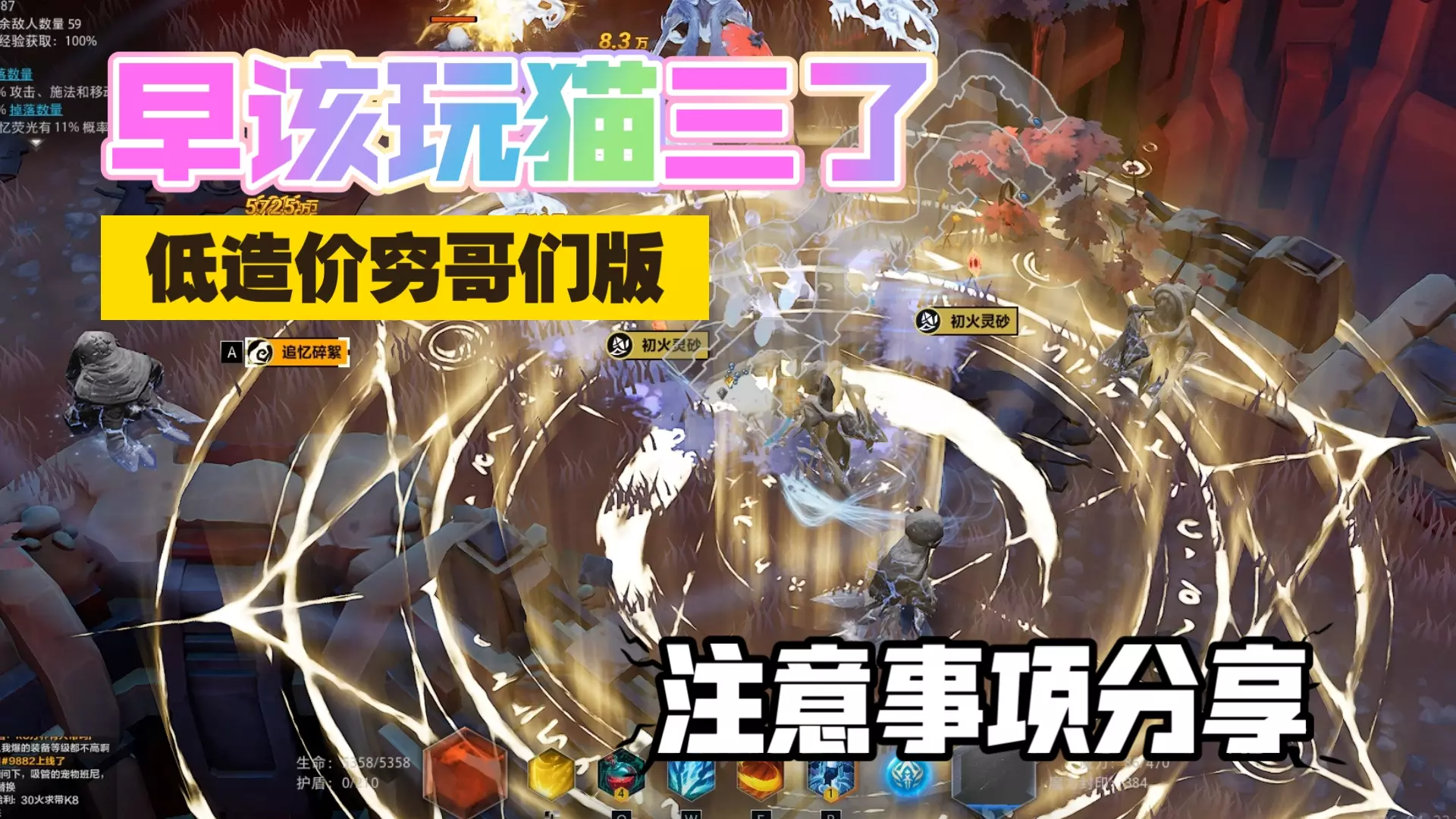这是火炬之光SS12的手游情报,介绍猫1焚诀流派无需高价值暗金,一路自给自足,熟悉K7万界机制就能在第一天轻松通关K7万界,还提供了流派码,视频后半段有K7万界相关内容。