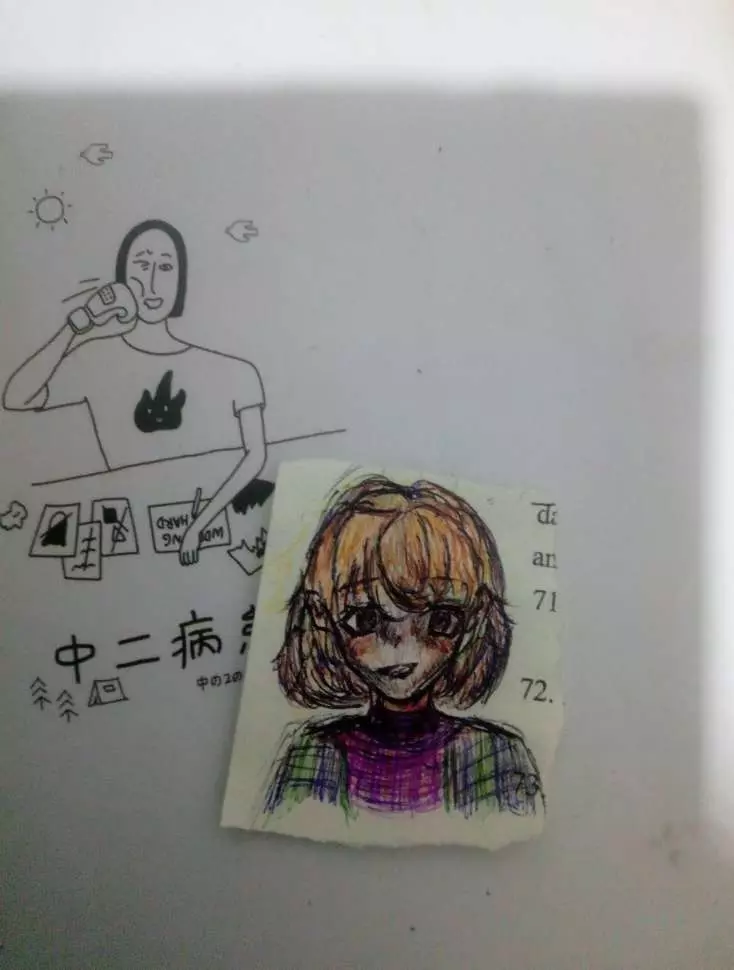 晚自习的时候有点无聊在卷子上画的,当时觉得挺好看就撕下来