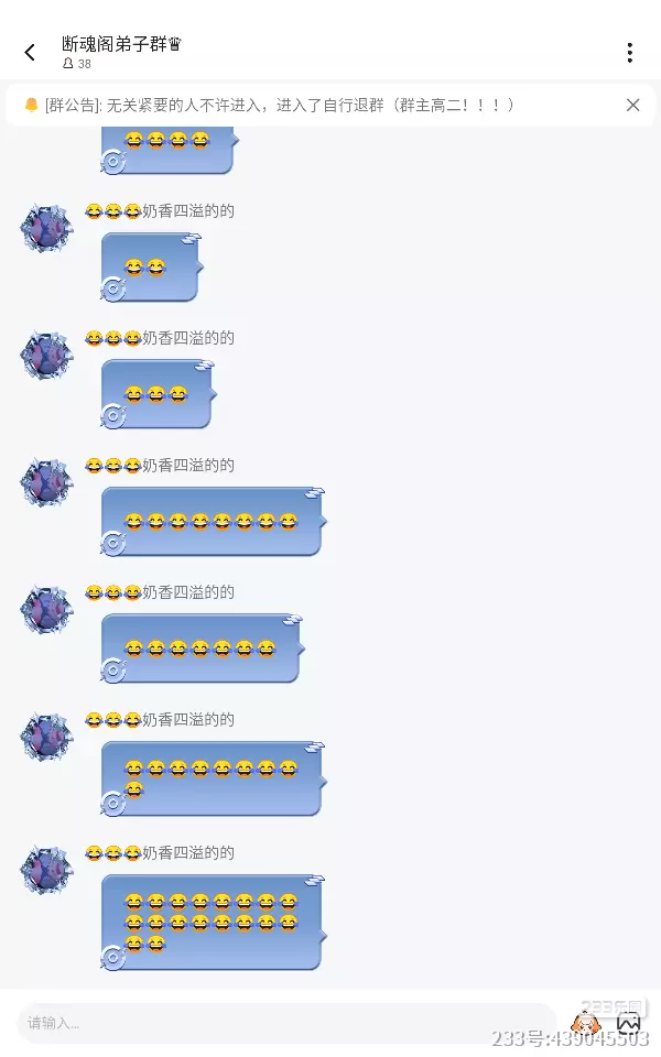 断魂阁弟子副群里的阁员突然发生被盗号的行为,盗号者先是在断魂阁弟子副群里发huang图,随后就被驱赶出断魂阁了