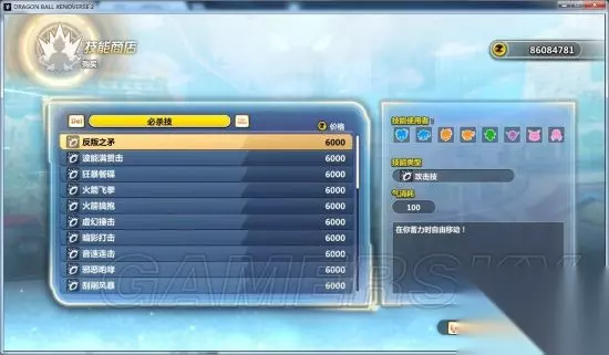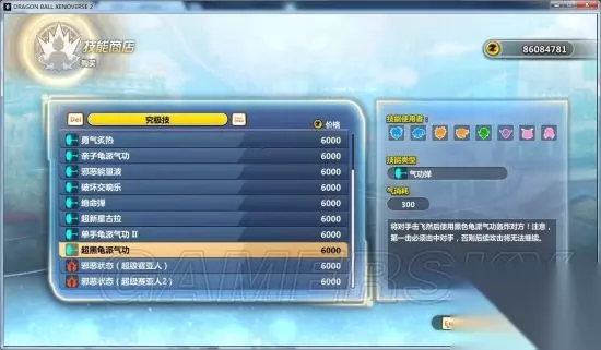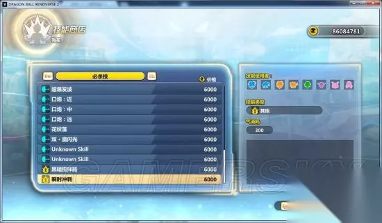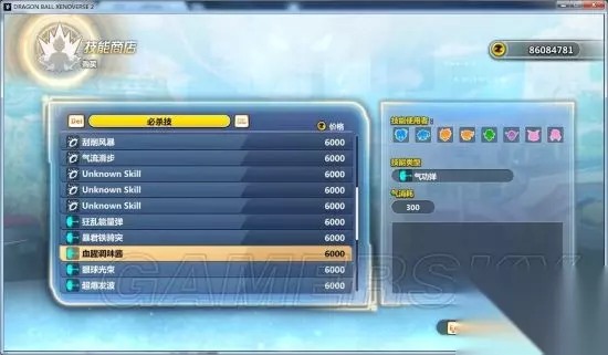 1.04NPC技能商店Mod 价钱公道合理,那些unknow的是dlc里的技能,目前就加了10个,蓝f必杀技、终极技、加贝的必杀和终极技,龟头的技能和觉醒技,悟空的蓝神10倍界王拳。大部分觉醒技全族通用。大部分技能能使用,极少数绝命弹那种看上去挺唬人就是不给你使用我也没辙。 skil_item放在data\system\item下,custom_skill放在data\system\下,skill.zip解压到data目录下。 对了气力消耗哪里千万别信。技能太多我也没一个个的去试也懒得去改了,写着消耗300实际上改多少是多少。