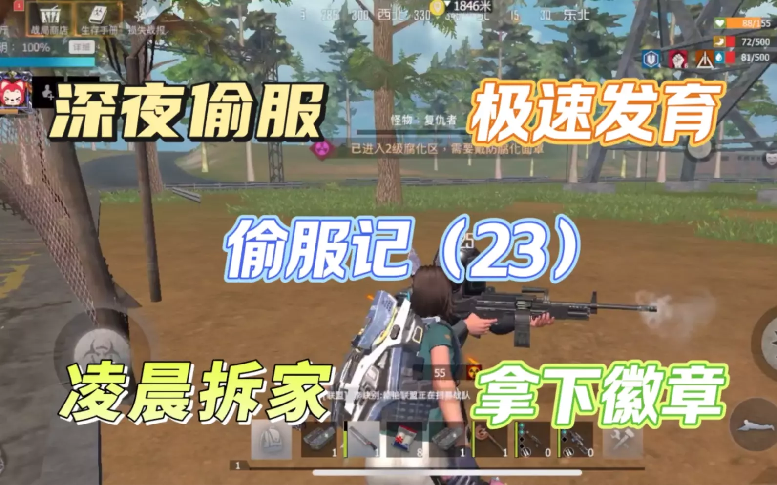 这是《王牌战争》的游戏内容,展示了反击服霸家前的准备工作,玩家可选择矿产丰富的区域,还能进入高级人机房获取物资、建造建筑、打怪,以此快速发育,为反击服霸做筹备。