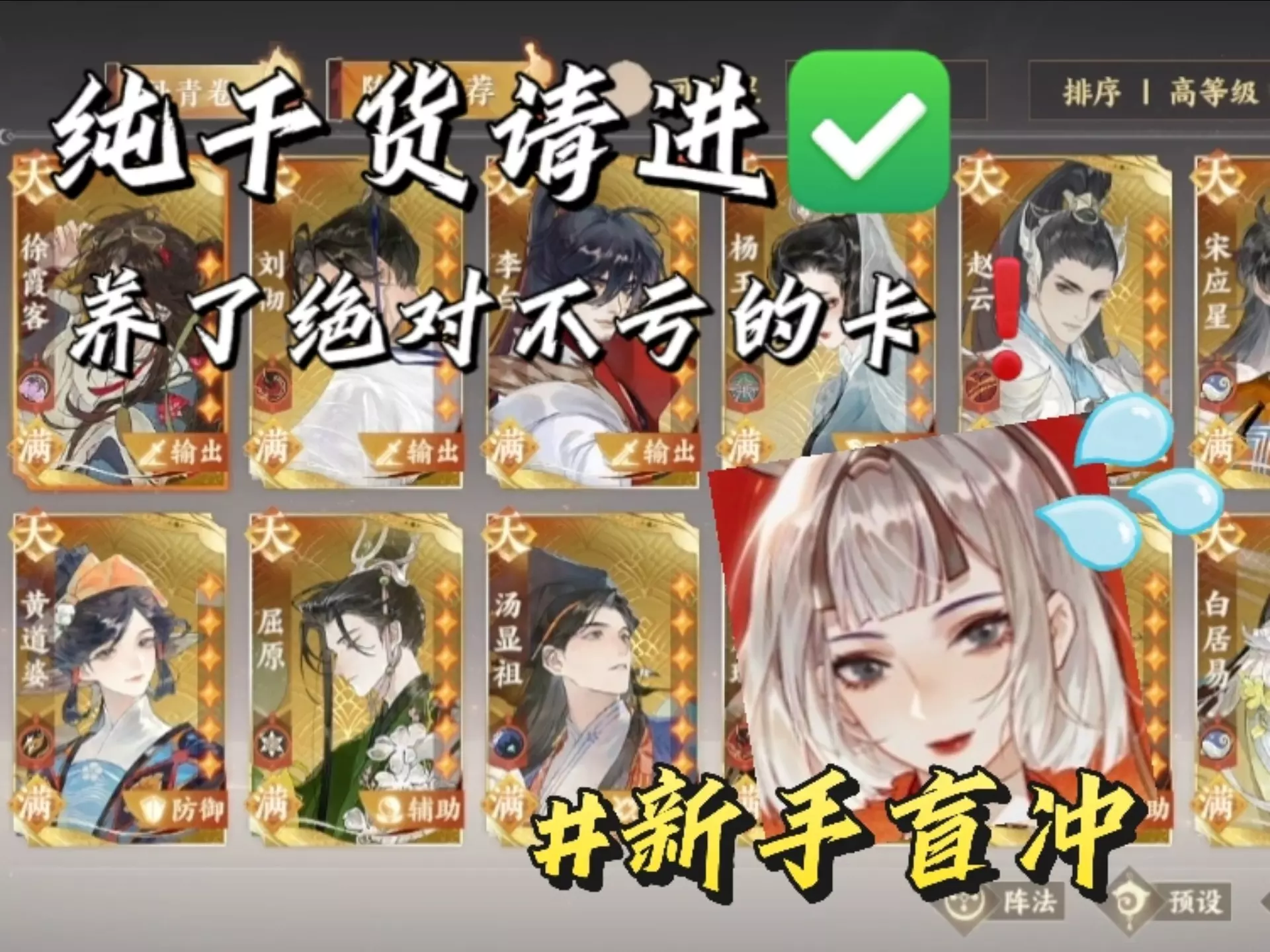 1.彪炳烟阁服务器,破阵子结榜录像。该服破阵子不卷,但变调令五19回合在其他服务器也都是绝对第一了。 2.可能有人说给新手推荐御三皇是不是毒攻略啊,还真不是,万…