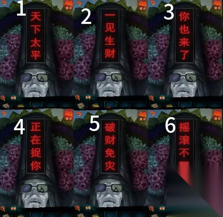 纸嫁衣7卿不负黑无常帽子线索是怎么解密的?第四章黑无常帽子上的线索解密有很多玩家不知道具体应该如何推理,这里其实要根据led屏幕上的文字来进行推理,下面为大家详细介绍一下解密的思路和流程,想要了解的玩家可以参考以下的内容介绍。 纸嫁衣7卿不负黑无常帽子线索解密攻略 1、解密思路 LED屏幕上滚动的字,将以下的字对应数字12345,然后去进行组合即可: 摇破正你一天; 滚财在也见下; 不免捉来生太; 死灾你了财平;