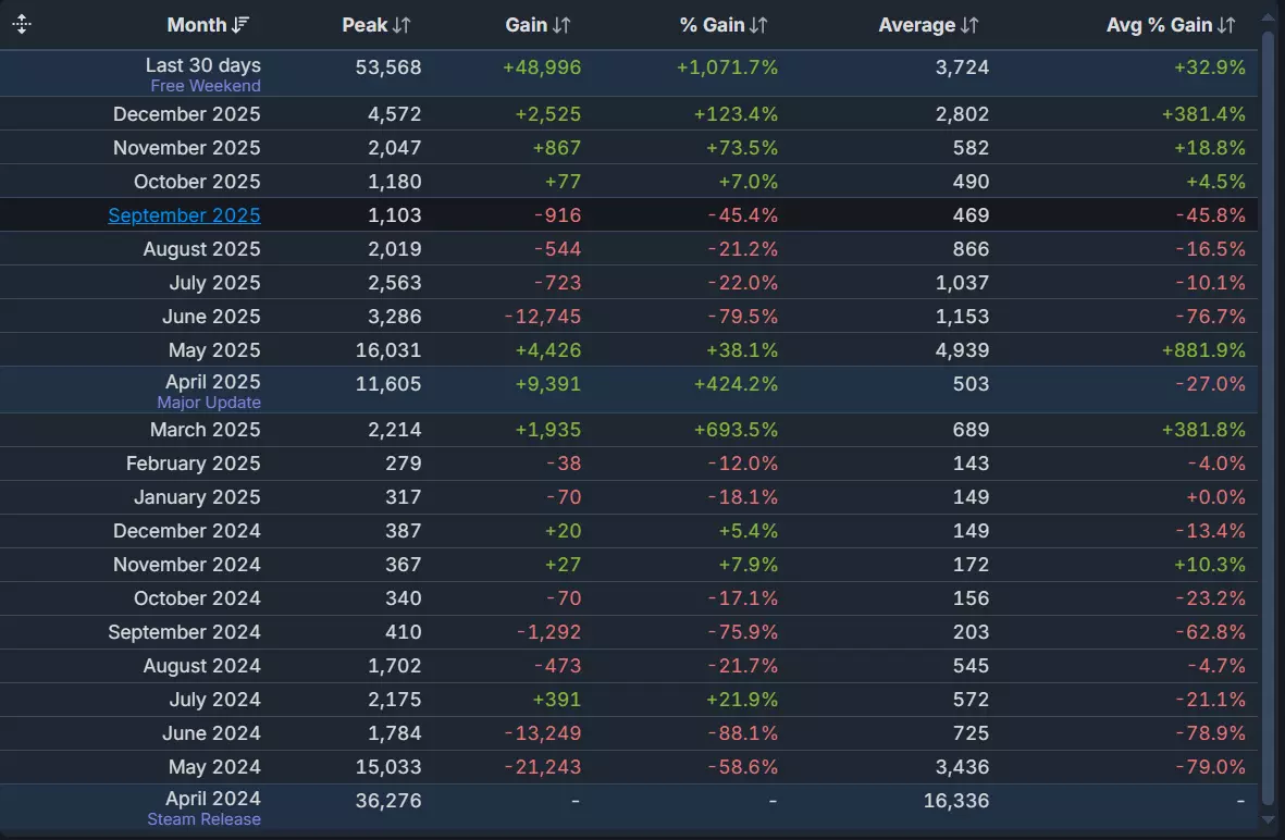 今天早上5点,《恶意不息》Steam在线峰值创新高!同时在线玩家数突破至5万。这都得益于联机模式的正式推出、免费周末畅玩、六折新史低三大主要因素。此前在线峰值破万仅有:2024年4月(抢先版上线):3.6万2024年5月:1.5万2025年4月:1.1万2025年5月:1.5万