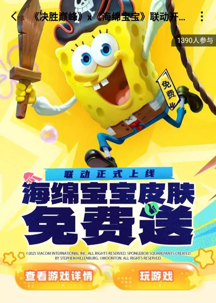 最近官方联动了款海绵宝宝和派大星皮肤!海绵宝宝皮肤免费做任务获取 机不可失 时不再来!