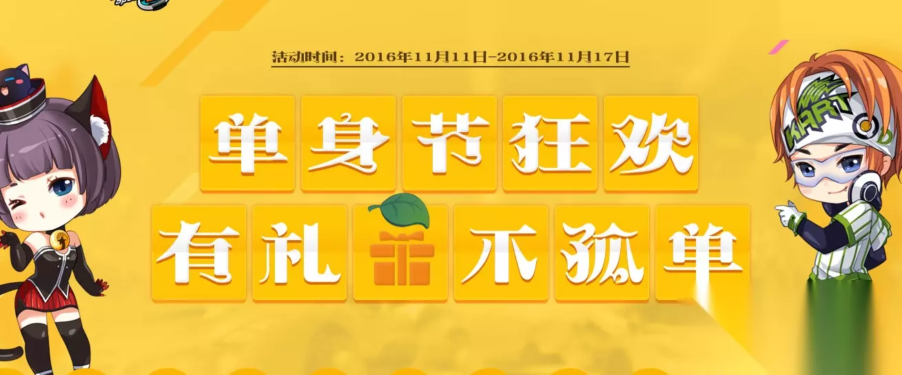 QQ飞车单身节狂欢活动由233乐园小编给大家带来,QQ飞车单身节狂欢有礼不孤单,双十一光棍节有豪礼相送,感兴趣的玩家一起来看看吧,希望大家喜欢。