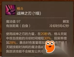 格挡率增加28%配合被动,能够让你刷新所有的格斗技能,往往出奇制胜让你坦然面对所有敌人。竞技场中如果对方带了BB,那你就感谢对方给自己扔坑里了,是对方BB成全了他的死亡。